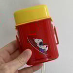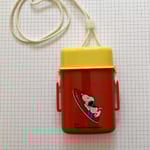 Boîte en plastique Snoopy avec cordon pour la porter autour du cou. Contient 12 crayons de cire. Porte la mention © 1958 United Feature Syndicate, Inc. Ancien stock neuf des années 80.